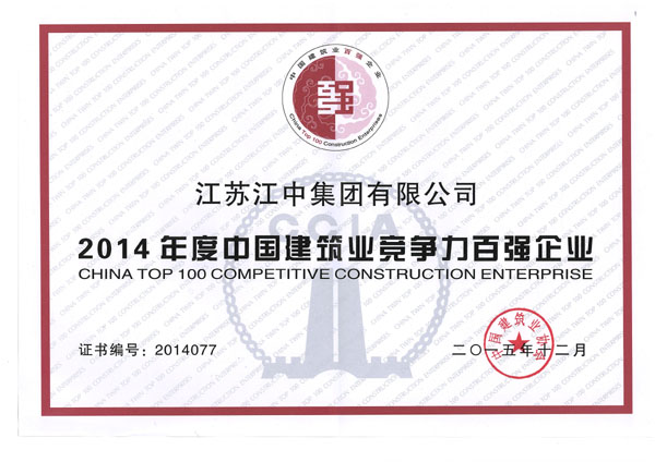 • 集团荣获2014年度中国建筑业企业竞争力百强企业