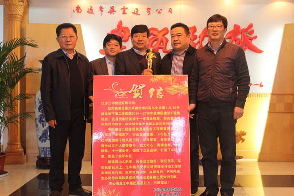2015年11月17日上午, 2014~2015年度中国建设工程鲁班奖(国家优质工程)表彰大会在北京钓鱼台国宾馆隆重召开。住房城乡建设部、建筑业协会等单位的领导及获奖单位代表近千人参加了会议。我集团总承包施工的海安中洋高尔夫公寓项目荣获此殊荣,集团董事长沈良兵应邀出席颁奖仪式,并上台领奖.。