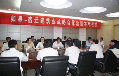 为落实省建设厅,省建工局关于展开建筑业南北挂钩战略合作的要求,集团公司和宿迁市建筑集团,宿迁市中原建筑公司两家建筑企业挂钩开展合作,6月9日下午在市建工局举行洽谈签字仪式。省建设厅建筑业发展与综合处邹金林处长、李波副处长,宿迁市建设局吴局长,如皋市建工局冯晰局长等领导出席仪式并讲话。沈岳总裁代表集团与两家企业签署合作协议,双方合作形式有联合投标,工程分包,劳务,共同投资开发,挂职学习等多种形式,力争达到双赢。​