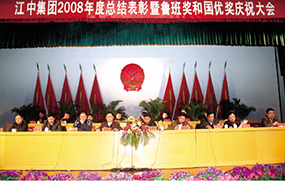 2009年1月30日,农历正月初五,适逢喜迎财神的日子。江中集团2008年度总结表彰暨鲁班奖和国优奖庆祝大会在培训中心大礼堂隆重召开,动员全体党员、干部和职工坚定信心,抢抓机遇,凝心聚力,创新创优,确保集团在新的一年里持续、快速、和谐向前发展。如皋市委常委、副市长马建明,市建工局局长冯昕,集团领导班子成员、全体党员干部、总公司全体人员、各下属公司全体班组长以上管理人员和职工代表1000多人出席会议。