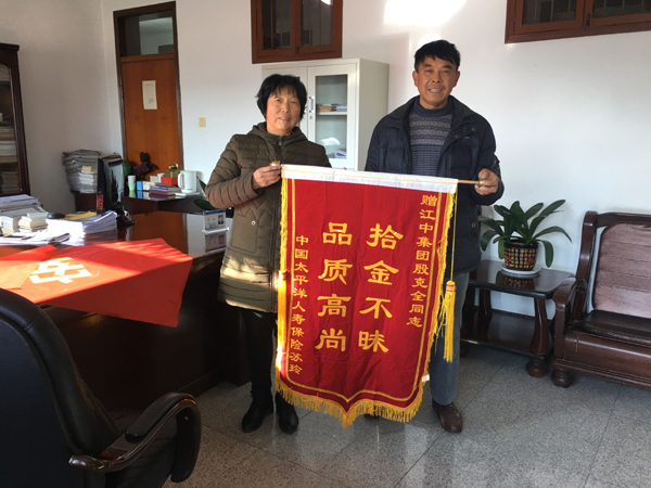 2017年12月25日上午,为了感谢拾金不昧好同志---殷克权,失主苏玲送来了锦旗。苏玲说:虽然我和殷师傅素不相识,但我感受到了淳朴善良的完美心灵,相信好人有好报,我们也会把他的这种拾金不昧的精神和这股正能量继续传递下去,再次说声多谢!他的善举给我们保险公司和我家人上了很生动的一课。