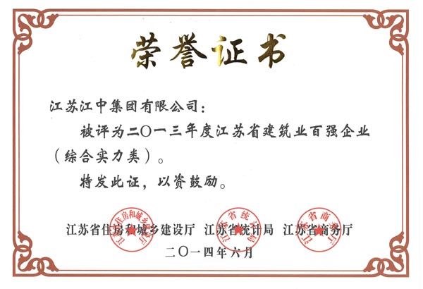 2014年6月10日,江苏省建筑行业协会在南京召开关于全省建筑业改革发展暨2013年度“百强企业”发布会。我集团董事局主席、党委书记沈良兵应邀出席并上台领奖。集团荣获2013年度江苏省建筑业综合实力类百强企业。