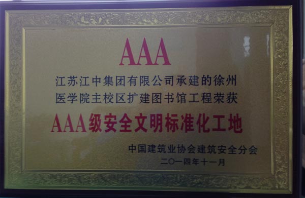 集团承建的徐州医学院主校区扩建图书馆工程荣获国家AAA级安全文明标准化工地。