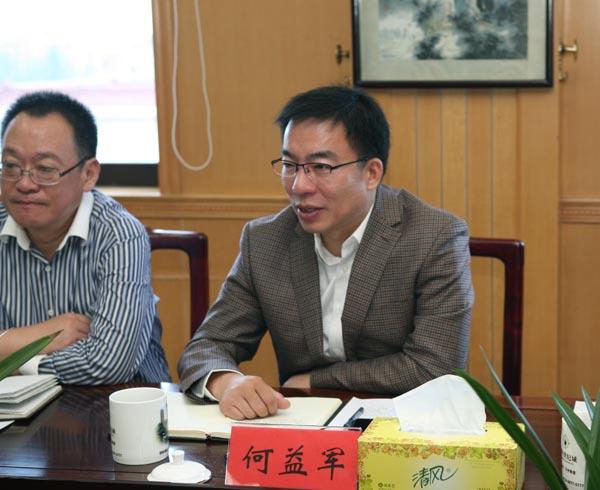 2016年10月13日,如皋市委副书记、市长何益军率领如皋市委常委、市纪委书记史有根、市人大常委会副主任张元健、和市政府办、发改委、建工局、法院、检察院等部门和单位负责人到我集团进行调研。吴窑镇党委、政府领导陪同调研,集团董事长沈良兵、党委书记沈岳接待何市长一行。