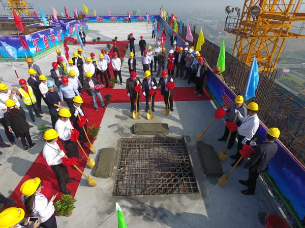 集团承建的汇金商务中心超高层工程举行封顶仪式