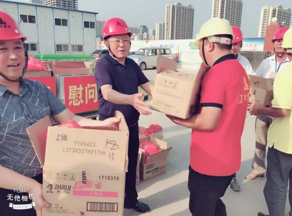 带着满满关切,集团董事局主席沈良兵冒着40度高温赴大连、济南、泰安、临沂等地检查工程项目,为一线职工送去高温下的关怀和慰问。董事长马华、副董事长张跃良等陪同。
